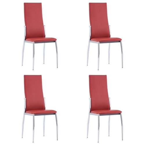 The dining chairs are upholstered in a soft faux leather and thickly padded to provide maximum comfort. Its ergonomic design makes the dining chair exceedingly comfortable to nestle. Additionally, thanks to the chromed metal legs, the chairs are considerably sturdy and stable.