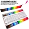 DUAL TIPS Dual brush pens are good for shading and coloring. It has 0.4 mm fine point tip and 1-2 mm soft brush tip. You can use brushes for outlining and detail, and get both colored brush markers and colorful fine liners pen, which are nice art tools for kids, adult, artists, students. Unique designed color caps keep tips from drying out. 24 UNIQUE COLORS Those dual brush pens have 24 vibrant colors. It will produce long lasting vibrant colors and hours of fun. Perfect for: drawing, sketching, coloring, note sketch book, lettering, calligraphy, school planner, den journal, journal lines, extra fine line, calendar. HIGH QUALITY All brushes and fineliner work well, the ink dries fast and doesn't smudge. Markers are long-lasting, quick-drying, non-toxic, acid free, and odorless water-based ink, fade proof, are perfectly safe for you and your kids. Also this is the perfect gift and addition for artists, students, adults, teachers. MULTIFUNCTION COLORING MARKERS Our dual brush pens set comes in a nice PVC storage case for ease in carrying and storing. It can be used in school, travel, at home and in office.