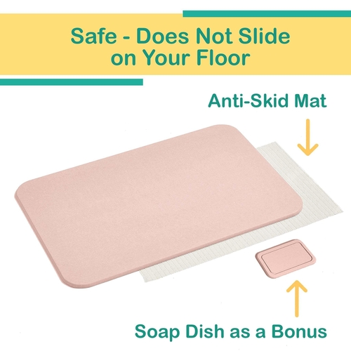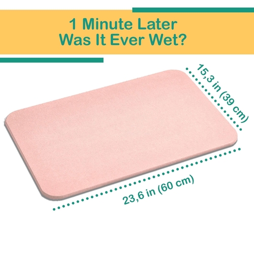 Diatomite - an innovative eco-friendly material - naturally possesses unique hygroscopic qualities eliminating humidity more efficiently. This is what places it in a different league than traditional fabric mats. This bathroom mat is 23.6 x 15.3 (60 cm x 39 cm), and should neatly fit any interior. A bottom pad for easier and safer use - its use is optional, depending on your bathroom floor, use at your discretion. Doesnt require much cleaning, and is convenient to clean when needed: just wash with liquid soap and water. Diatomite soap dish - complimentary. Quantity discount on checkout.