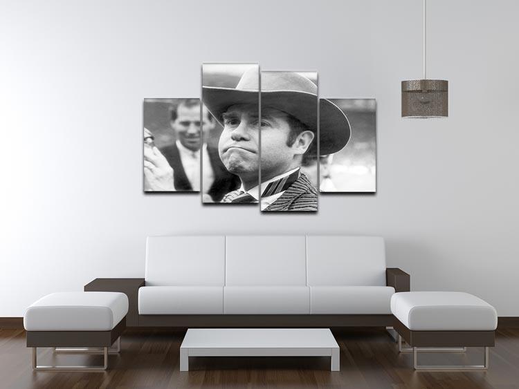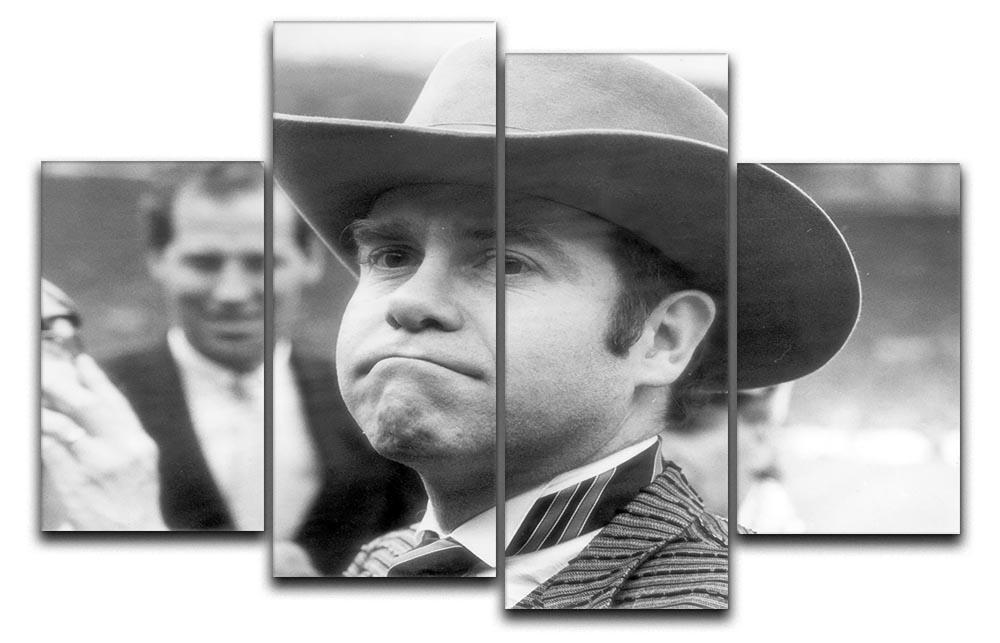 The Elton John in a Hat 4 Split Panel Canvas is a stunning piece of art that captures the essence of one of music's most iconic figures. This unique artwork is divided into four equal sections, each functioning as a separate canvas. When displayed together, these panels create a cohesive and striking image that is sure to be a conversation starter in any room.