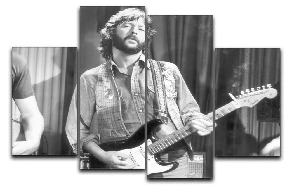 The Eric Clapton in 1978 4 Split Panel Canvas is a unique and captivating piece of art that celebrates the legendary musician's iconic presence. This artwork is divided into four equal sections, each functioning as a separate canvas. When displayed together, these panels create a cohesive and striking image that captures the essence of Eric Clapton during a pivotal moment in his career.