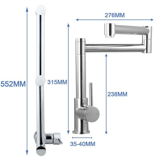 Long Kitchen Mixer Tap w/ 360° Swivel and Foldable Spout, Space saving