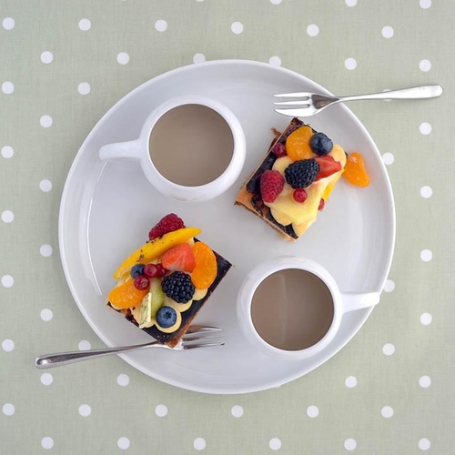 Inspired by the ceramics of Eva Zeisel, the EVA teaset embodies her design philosophy of attracting the hand as well as the eye. Simple, elegant and delightful to handle, the Eva teaset won the 2014 Golden A’ Design Award for Tableware. Available in glossy white porcelain with silver plating, or a black matte stoneware. The EVA platter has an assymetric rim that is higher on one side to facilitate picking up and serving tea.