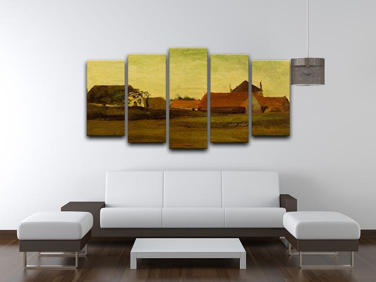 Experience the beauty of Van Gogh's artistry with the captivating Farmhouses in Loosduinen near The Hague at Twilight. This exquisite piece is presented in a unique 5-split canvas format, which divides the artwork into five separate panels that together create a cohesive and striking image. This innovative design not only enhances the visual appeal of the artwork but also adds depth and dimension, making it a perfect centerpiece for any room.