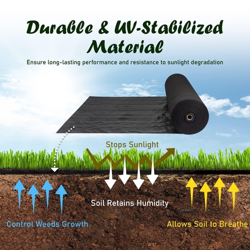 WIDE APPLICATION: The weedblock landscape fabric is designed for wide application, allowing you to use landscape cloth or landscape barrier to remove weeds & grass, & protect your landscaping. Try weed matting for garden in your backyard, garden, or commercial property. Garden fabric or garden mats for weeds are easy to use: dig, rake, roll, & secure the ground cover weed barrier with staples. Quickly create an effective, long-lasting weed barrier heavy duty with our garden cloth weed barrier.