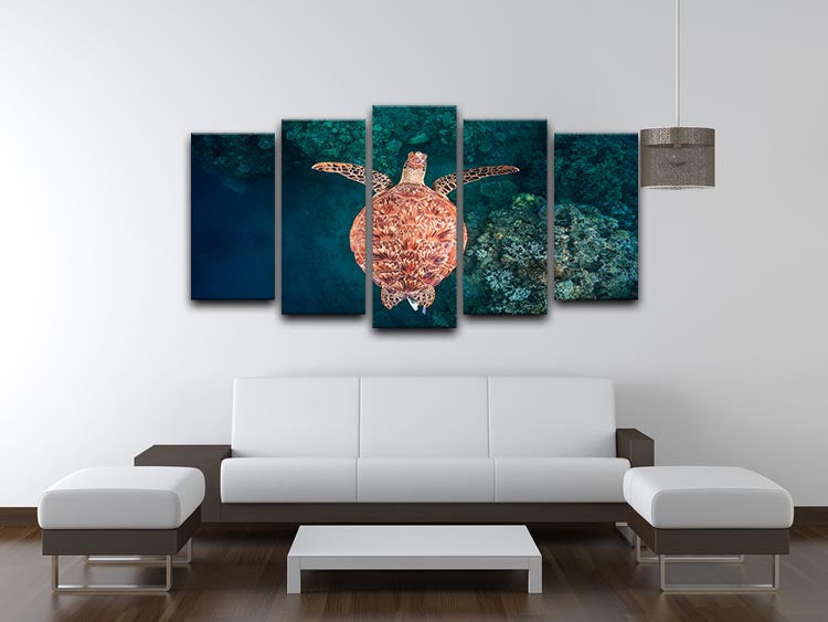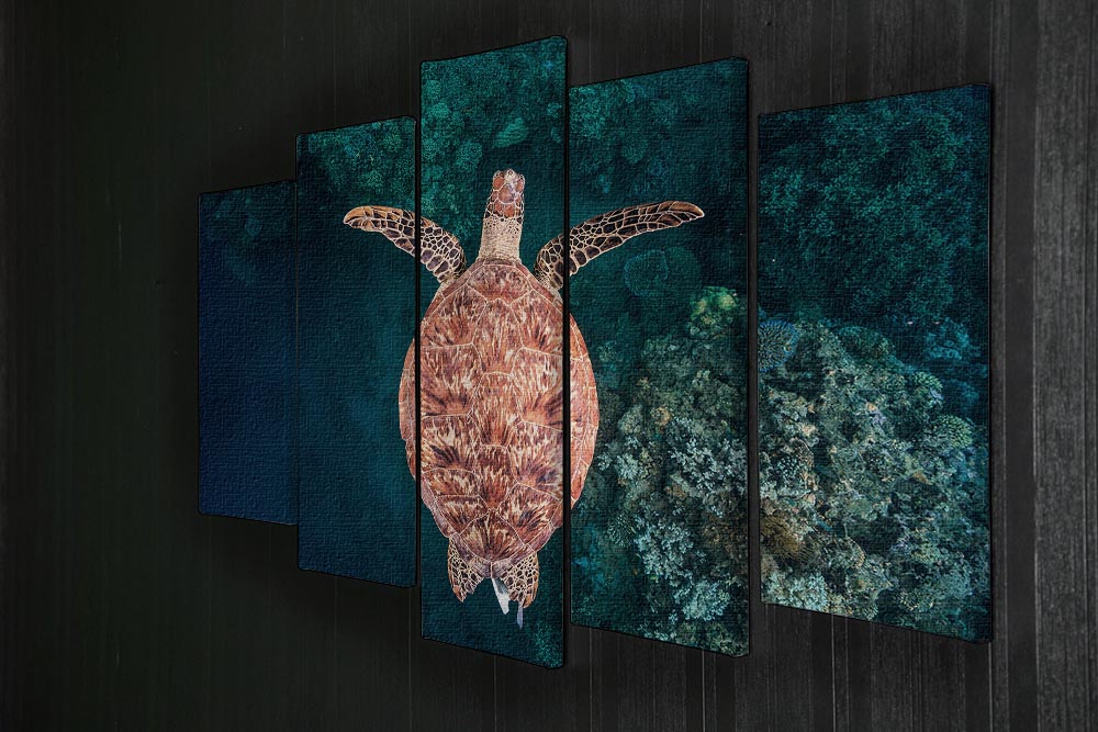 The Flying Over The Reef 5 Split Panel Canvas is an exquisite piece of art that brings the beauty of underwater life into your home. This stunning artwork is divided into five separate panels, each contributing to a cohesive and breathtaking image that captures the essence of a vibrant reef. The unique split panel design not only enhances the visual appeal but also allows for creative arrangements that can fit any wall space.