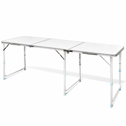 This foldable camping table with practical carrying handle will come in handy in kitchens, on patios, in gardens, and on picnics or camping trips. The table height can be adjusted to 21.7", 24.4", and 27.6".