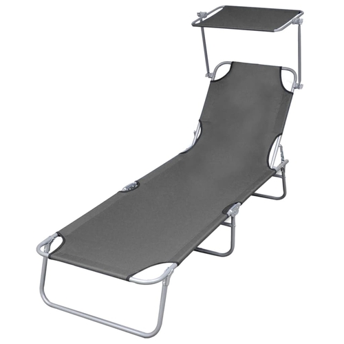 Dropship Folding Sun Lounger with Canopy Steel Gray