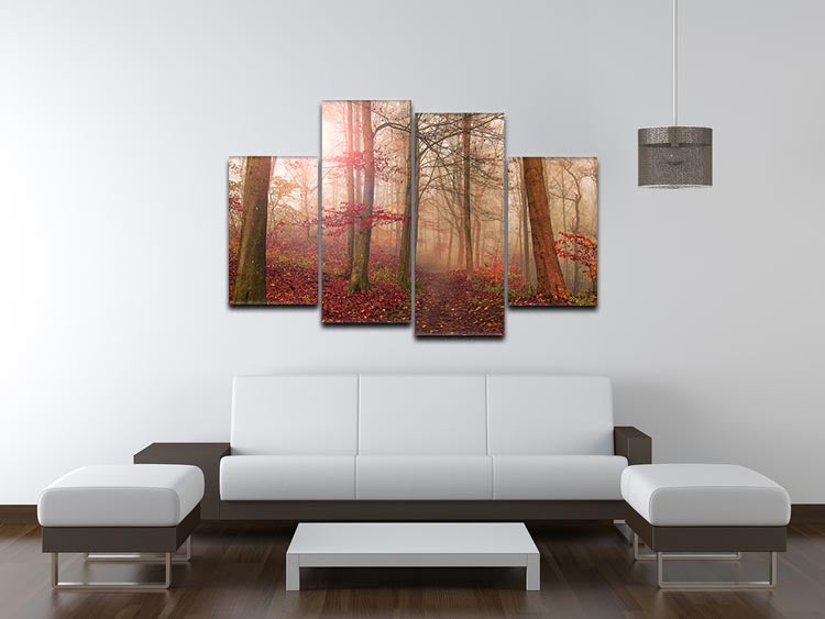 The Forest Scene 4 Split Panel Canvas is an exquisite piece of art that transforms any space into a serene woodland retreat. This unique artwork is divided into four equal sections, each functioning as an individual canvas. When displayed together, these panels create a cohesive and captivating image that draws the eye and sparks conversation.