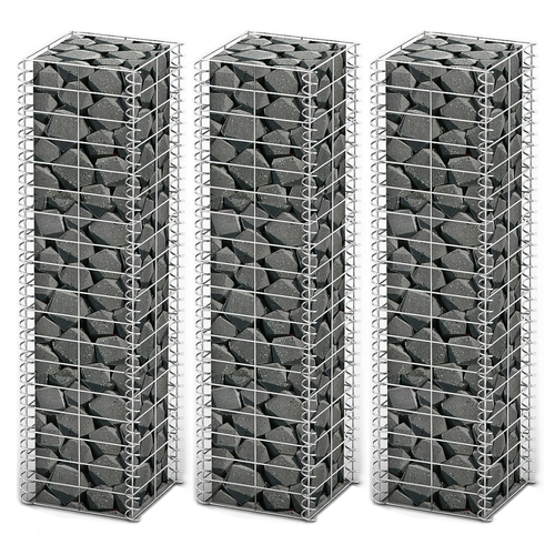 Gabion Set 3 pcs Galvanised Wire 9.8" x 9.8" x 19.7"