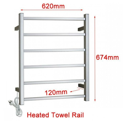 GAMA SQUARE CHROME ELECTRIC HEATED TOWEL RACK 6 BARS