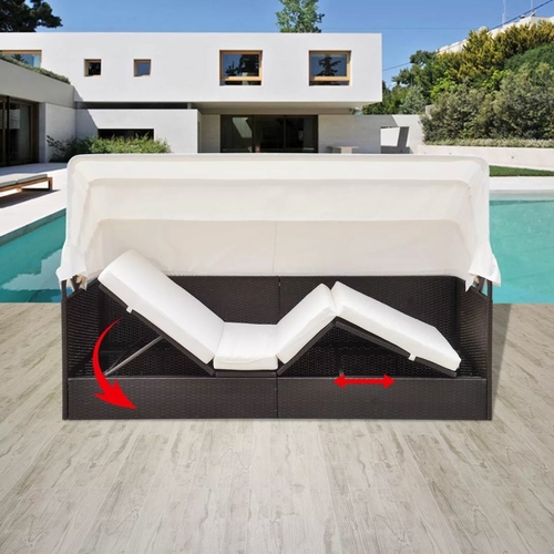 The sun lounger is made of water-resistant PE rattan, which is easy to clean, stain resistant, hardwearing and suitable for daily use. The sunroof also protects you from the hot sunlight when you read or relax in summer days. The lying area can be adjusted in various settings for the most comfortable position. The steel frame makes this sunlounger sturdy and stable. It is also delivered with a highly comfortable, thickly-padded seat cushion for the ultimate comfort. The low-maintenance polyester cover can also be removed and washed. Delivery includes a lounge bed with canopy and a large seat cushion.