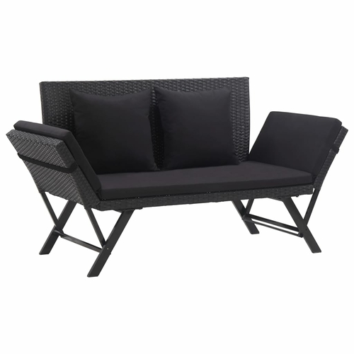 Made of the weather resistant PE rattan, this garden bench is easy to clean, hard-wearing and suitable for daily use. It features a sturdy powder-coated steel frame, making this bench very stable and durable. It can be converted from a bench to a day bed and back again quickly and easily thanks to the adjustable sides. The thickly padded cushion will provide the ultimate comfort and added support. Additionally, thanks to the zipped design, the cushion cover is removable for easy washing.