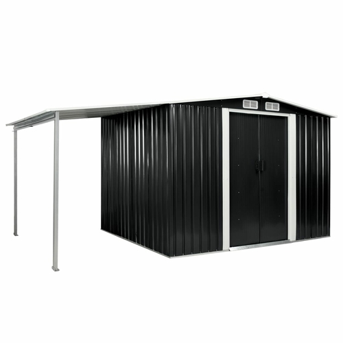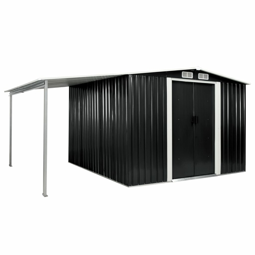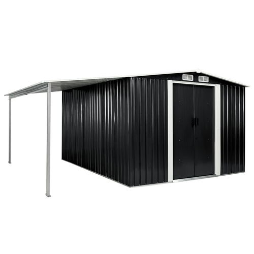 This storage house are equipped with vents, designed as shutters, which not only keep the rain away but ventilate all the time to reduce the accumulation of moisture and odor in the house. Its double sliding doors in the front allow easy entry and exit. They can be secured together with a padlock (not included) through the pre-drilled holes in the handles. Thanks to corrosion-resistant galvanised steel, the tool shed is sturdy and durable, and built to last. The log shed will be your ideal option since the extended roof, which can be fixed on either side of the shed, provides additional storage space.