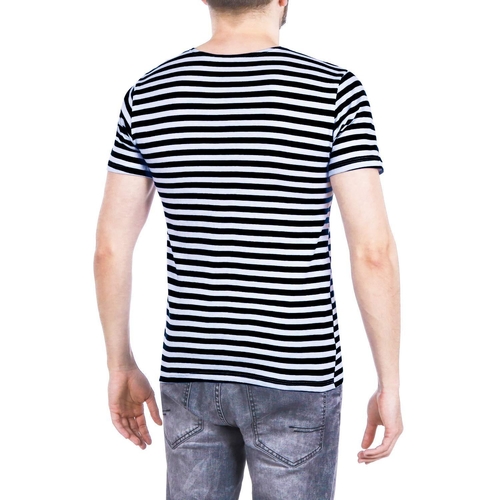 Strips are white and dark blue and they are weaved, not painted as sometimes Chinese guys made falsified t-shirts