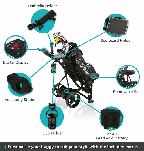 Never carry heavy bags again! Move around the course in a timely fashion and comfort with new electric golf buggy!