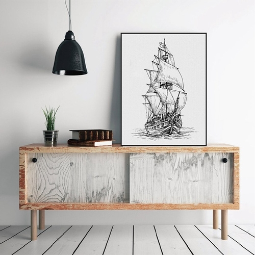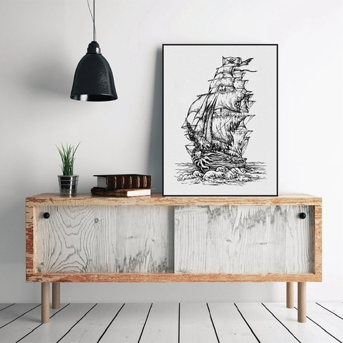 Dropship Hand Drawn Pirate Ship Art Print Wall Pictures ,
