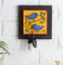 Hand-painted blue bird on a yellow wooden square key holder, adding charm and functionality to your entryway.