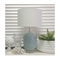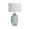Bring the Bahamas into your home with this beautiful pale duck egg blue ceramic lamp with crystal at the bottom of the lamp base with a white linen drum shade. The pineapple texture of the lamp base gives the look that is casual but stylish. The complete lamp height (base & Shade) is 71cmh - Lamp: 38 x 38 x 71 cmh, shade size in 38 x 38 x 25 cmh. It has a white cord & cord-line switch.