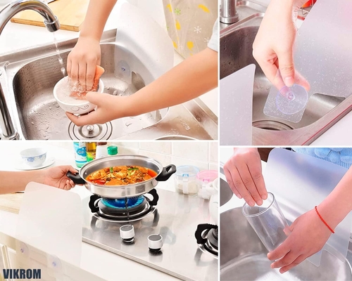 Suction Cups Stay On Strong: This splash guard for kitchen sink has two suction cups, which ensure optimal grip. Before using make sure that the surface is clean and dry. This kitchen splash guard prevents your clothes from getting wet.