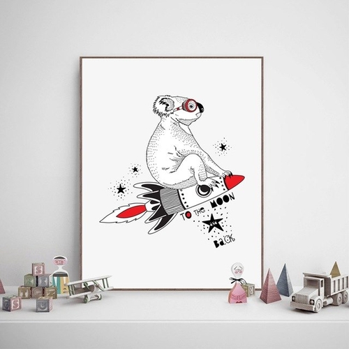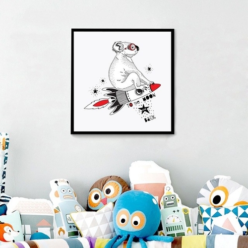 • Theme: Nordic Cartoon Koala Flying On The Rocket To The Moon Canvas Prints