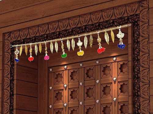 This leaf with lamp design golden bandarwal is a stunning decorative piece, perfect for enhancing the elegance of your celebrations.