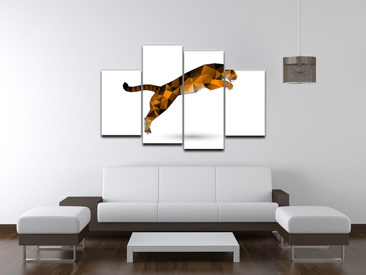 The 4-split canvas format offers a dynamic visual experience, allowing the artwork to stand out in any setting. The leaping tiger, depicted in vibrant colors and geometric shapes, brings a sense of energy and movement to your walls. This design not only enhances the beauty of your space but also adds a contemporary touch that complements various interior styles.
