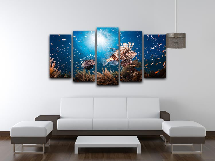 The Lionfish 5 Split Panel Canvas is a unique and captivating piece of art that transforms any room into a vibrant and engaging space. This artwork is divided into five separate panels, each contributing to a cohesive image that draws the eye and sparks conversation. The split panel design not only enhances the visual appeal but also allows for creative placement options, making it a versatile choice for various interior styles.