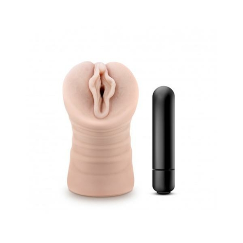 Ashley is aching to take you whenever you want her. This soft, vagina-shaped masturbator is made of lifelike X5, for the perfect balance of soft and firm. Plus, the one-speed vibrating bullet delivers even more sensation up and down your shaft.