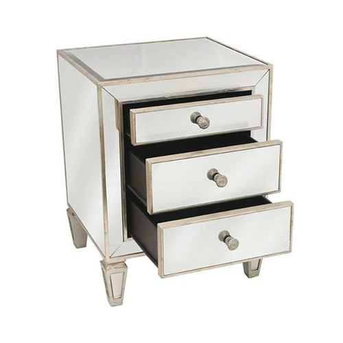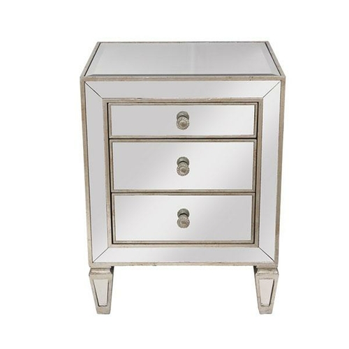 1 x Mirrored 3 Drawer Bedside Antique Seamless
