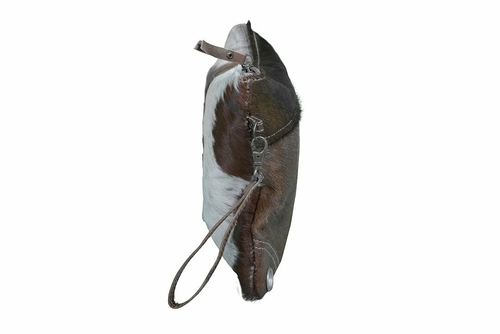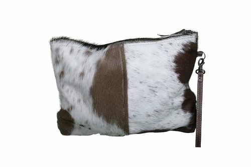 This gorgeous Moo Zip Clutch Bag Dark is the perfect size to hold all your essentials. Light weight and no-fuss it's the ideal way to take everything you need without lugging unnecessary items. The stunning cowhide and exposed stitching with corner trim detailing, makes it easy to complement your outfits whether you're dressing up or down. The clutch also features a sleek genuine leather key holder that clips straight onto the clutch.