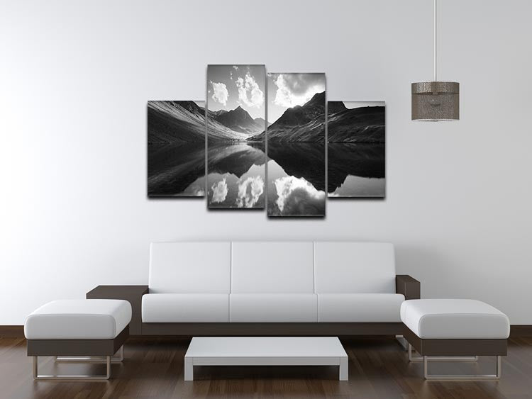 The Mountain Reflection 4 Split Panel Canvas is a captivating piece of art that transforms any space into a serene and visually appealing environment. This unique artwork is divided into four equal sections, each functioning as an individual canvas. When displayed together, these panels create a cohesive and harmonious image that draws the eye and sparks conversation.