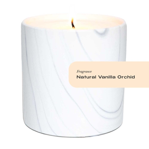 A handmade, hand-painted ceramic vessel featuring a unique marble design: white with elegant swirls of gray and black. This timeless décor will live on long after the candle has finished burning either refilled as another Plant Based Candle, as a planter for your favorite flora, or a practical container for your precious goods.
