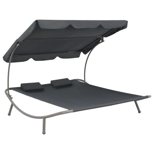 The sunlounger has a sturdy steel frame, which is stable and durable. The decoratively edged sunroof also protects you from the hot sunlight when you read or relax in summer days. It is also delivered with two highly comfortable, thickly-padded pillows for the ultimate lying comfort. The low-maintenance polyester pillow covers and canopy can also be removed and washed. This sunbed is easy to assemble.