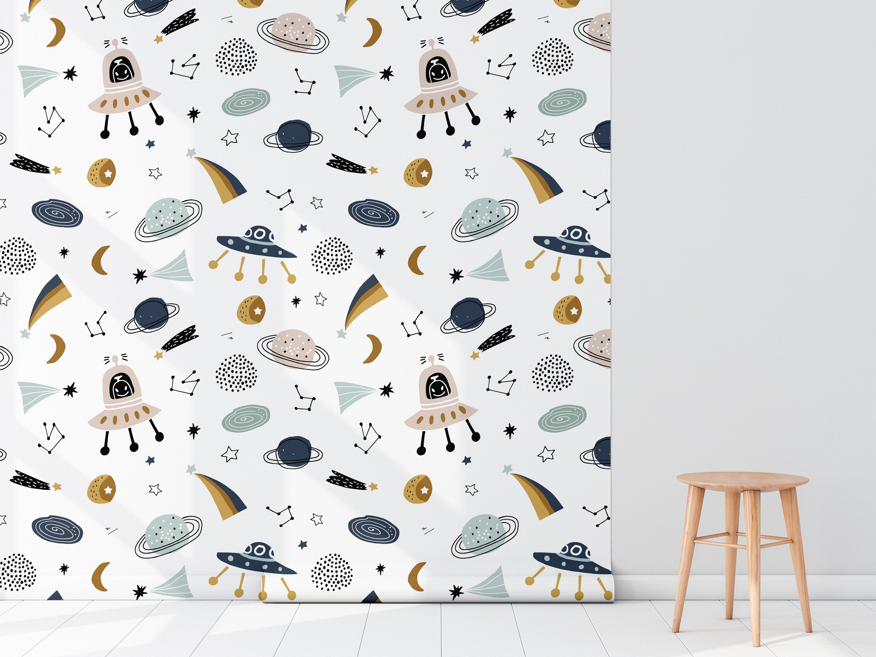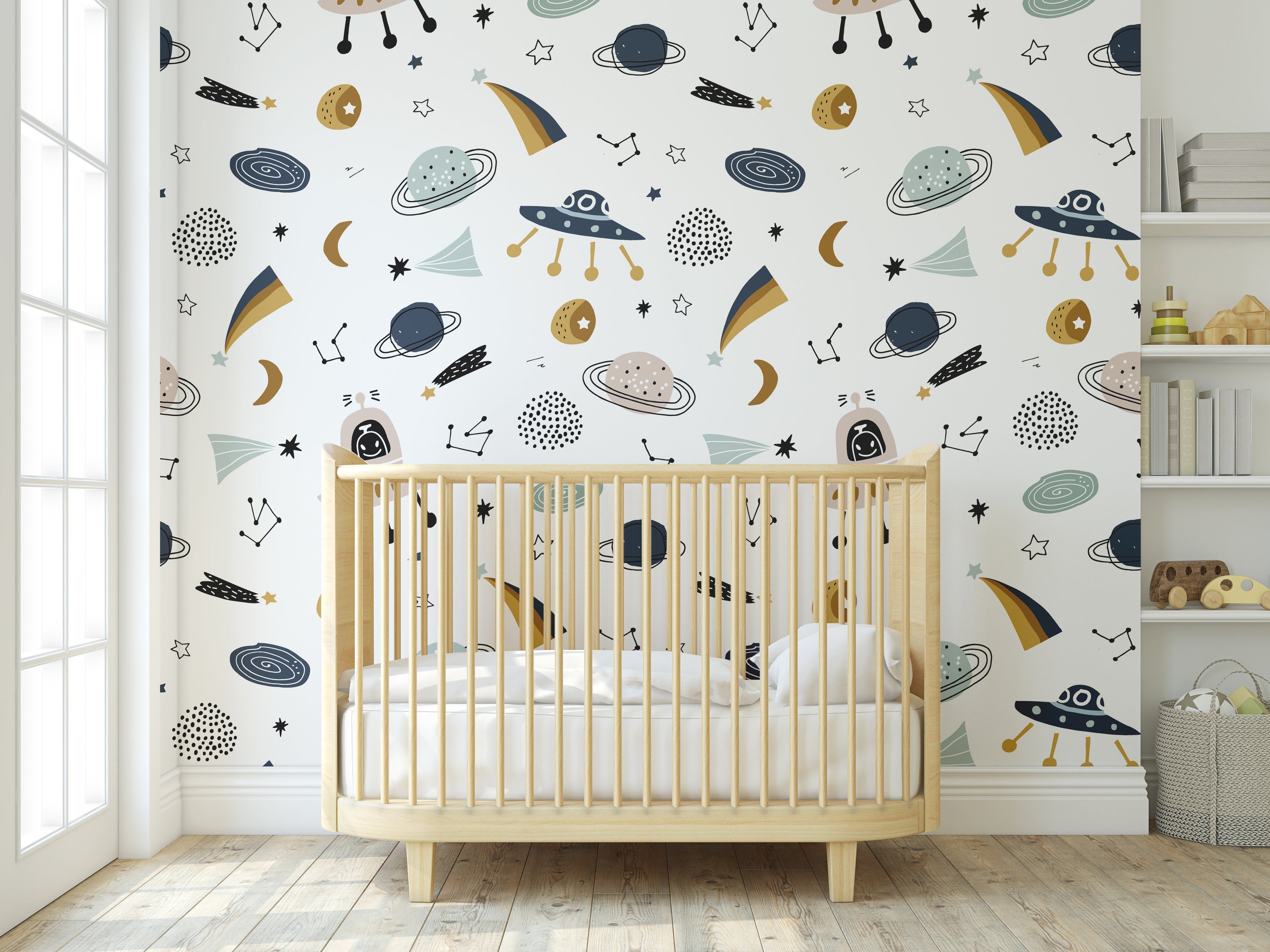 The vibrant colors and bold patterns of our Outer Space Wallpaper make it a versatile choice for any room in your home. Whether you want to create a whimsical nursery, a stylish living room, or a unique accent wall in your office, this wallpaper can help you achieve your desired aesthetic. Its modern design is sure to impress guests and create a welcoming atmosphere for your family.