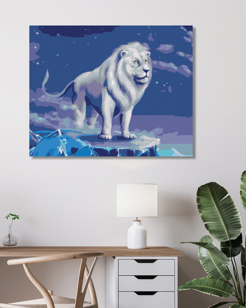 Dropship Paint by Numbers - A WHITE LION WITH A CLEAR BLUE SKY