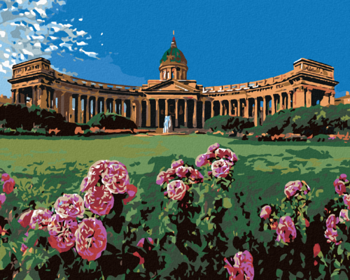 Dropship Paint by Numbers - ANCIENT BUILDING IN A BLOOMING GARDEN