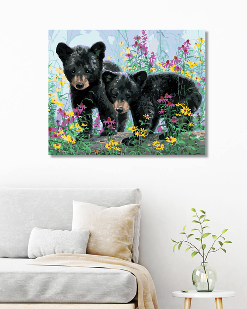 Paint by Numbers - BEAR CUBS IN FLOWERS (ABRAHAM HUNTER)