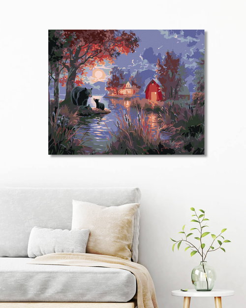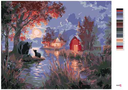 Dropship Paint by Numbers - BEAR WITH CUBS AT THE LAKE, FARM AND MOON (ABRAHAM