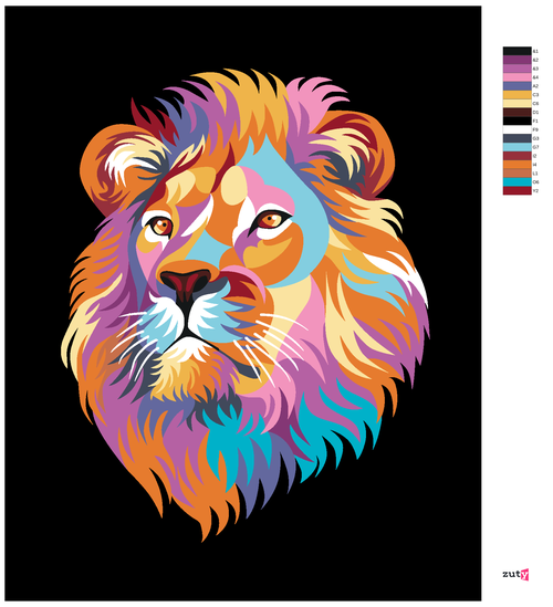 Paint by Numbers - BEAUTIFUL COLOURED LION ON BLACK BACKGROUND