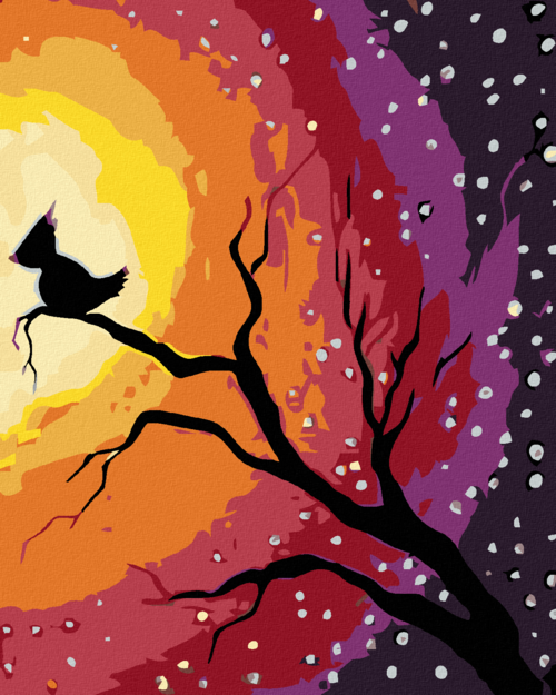 Paint by Numbers - BIRD ON A BRANCH AND THE NIGHT SKY