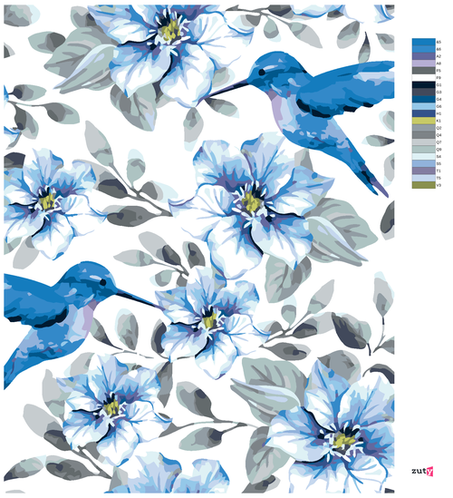 Paint by Numbers - BLUE FLOWERS AND HUMMINGBIRDS