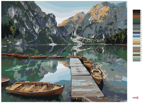 Dropship Paint by Numbers - BOATS ON A MOUNTAIN LAKE