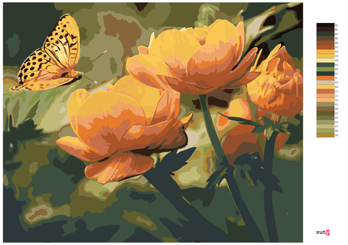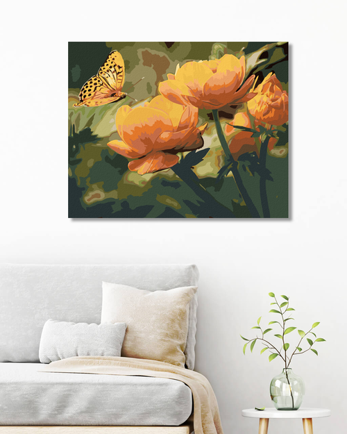 Paint by Numbers - BUTTERFLY AND ORANGE FLOWERS