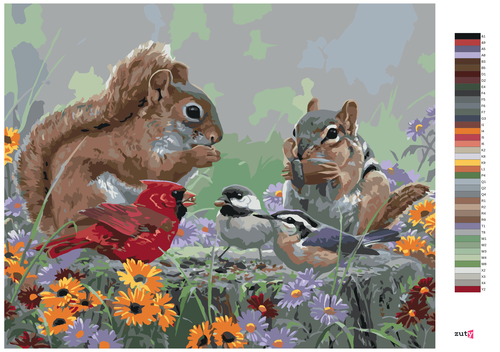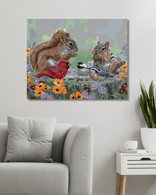 Dropship Paint by Numbers - CHIPMUNK, SONGBIRDS AND FLOWERS (ABRAHAM HUNTER)