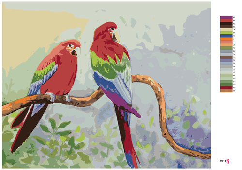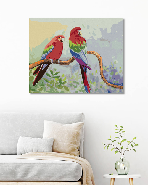 Paint by Numbers - COLOURFUL PARROTS ON A BRANCH