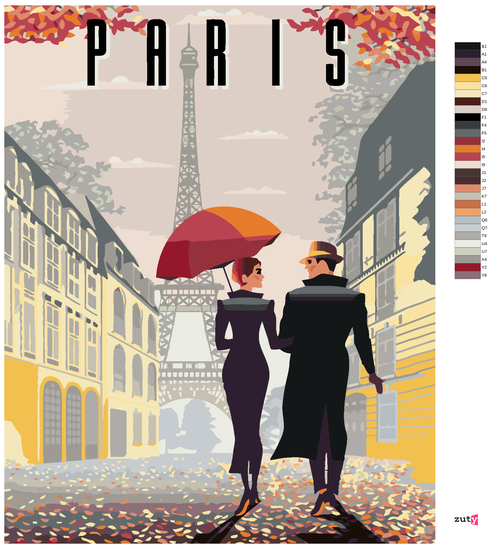 Paint by Numbers - COUPLE WITH UMBRELLA AND EIFFEL TOWER