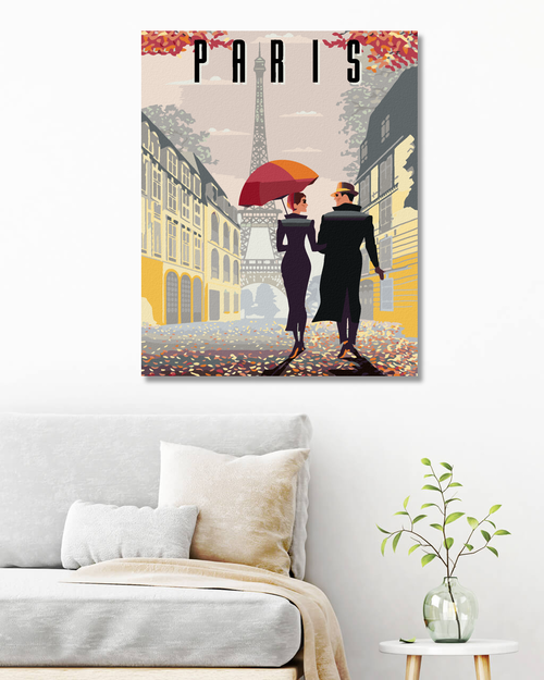 Dropship Paint by Numbers - COUPLE WITH UMBRELLA AND EIFFEL TOWER