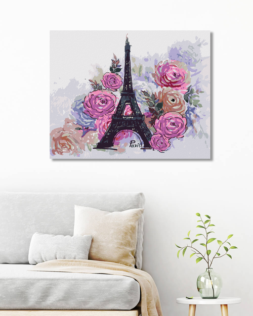 Dropship Paint by Numbers - EIFFEL TOWER SURROUNDED BY FLOWERS