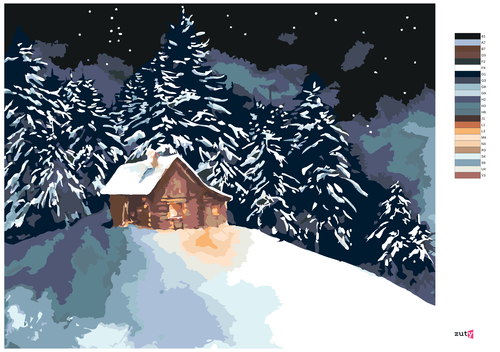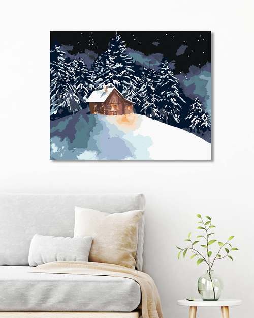 Dropship Paint by Numbers - FOREST CABIN ON A SNOWY HILL